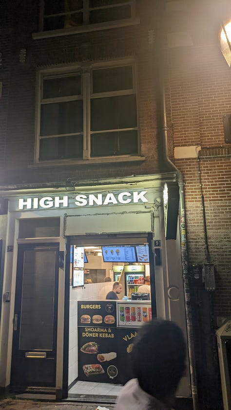 (Before you ask, I didn't go to a "coffee shop". There are new rules about smoking in public, and I just didn't want to be a tourist menace. Also I'm pretty square so there was a low chance of this happening anyway.)