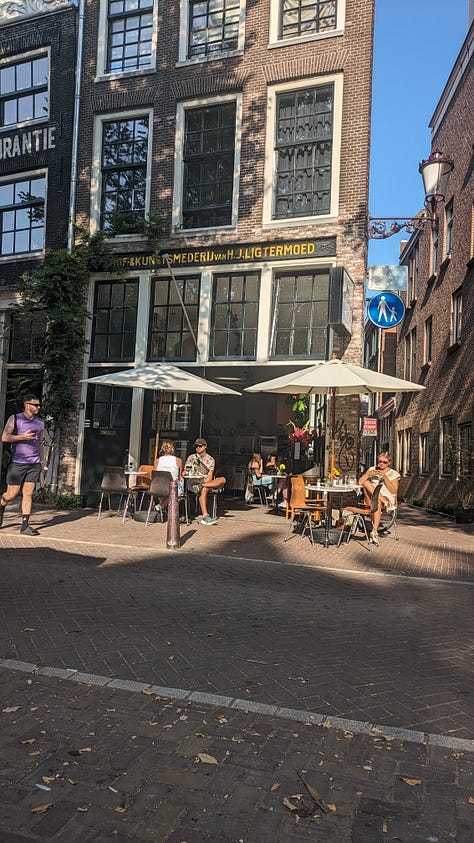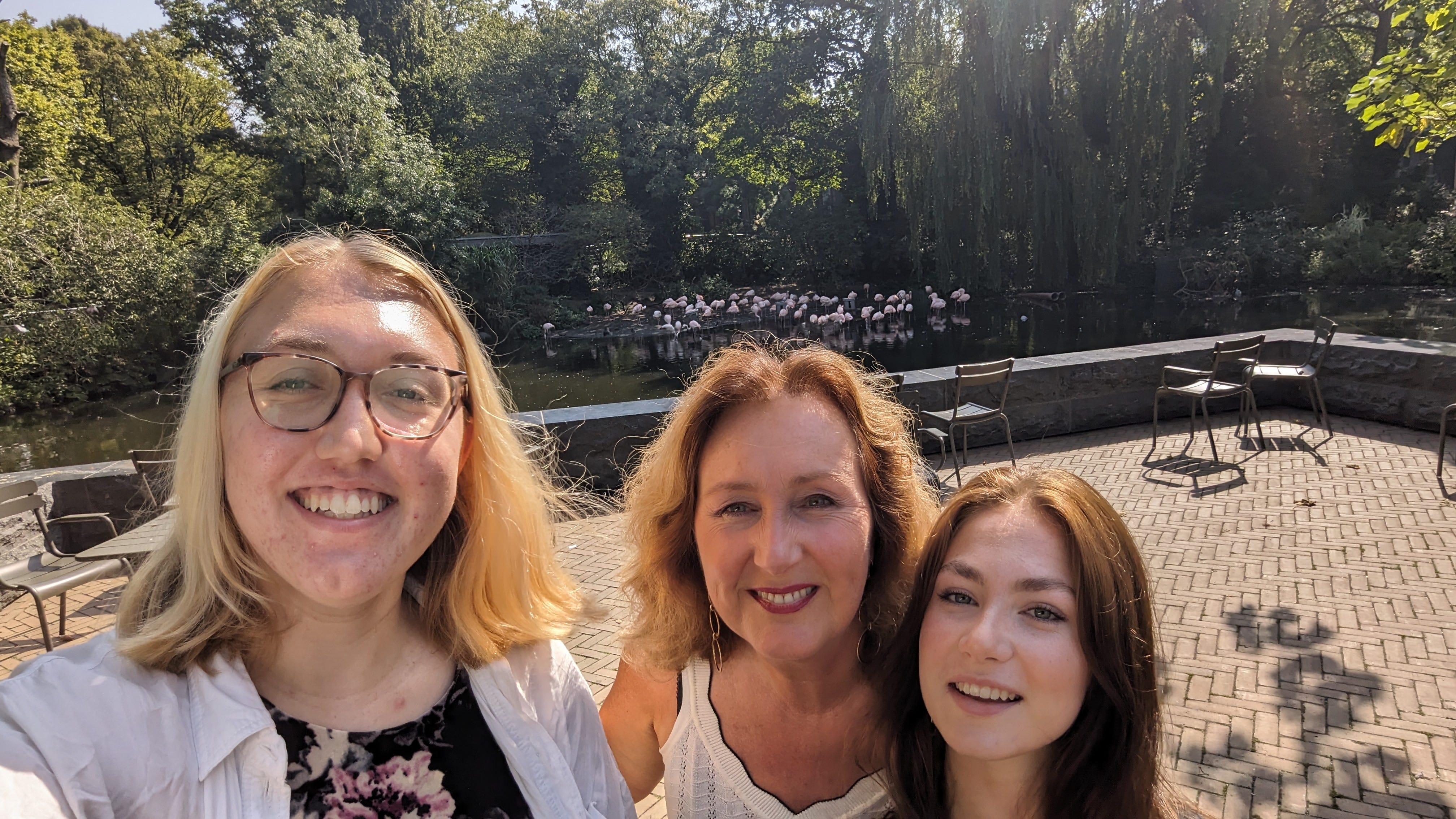 On day 2 I slept in a bit, had a cappuccino by the canal with the Swiss, and was excited to be able to meet with some distant relatives for lunch! The last time I'd been in Amsterdam was 2012 with my family, and I met my second (or maybe third?) cousins Hannah and Mara, both a few years younger than me, so I wanted to make sure I could say hi if I got the chance on this trip! Hannah is studying law now and couldn't make it back for a lunch, but I did get to see Mara and was shocked by how grown-up and teenagery she was! She's going through her last year of high school now, and I got to ask a little about what that's like and her future plans. Her mom Henriet chose a wonderful restaurant in a quieter neighborhood near the Amsterdam Zoo, and I also enjoyed catching up with her and what life's been like since the pandemic. We took a picture by the Flamingos, and I included a photo of us in 2012 also for reference. Mara was the shortest of all of us babies!